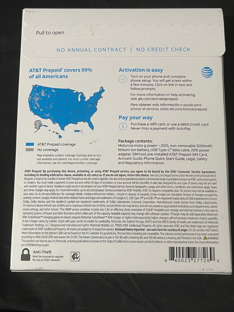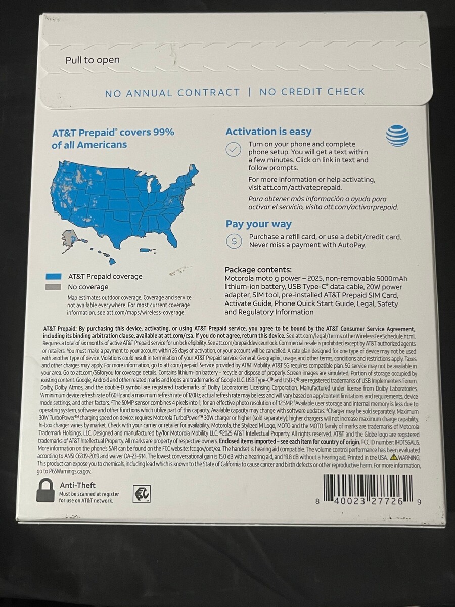 Motorola Moto G Power 5G 2025 6.8" 128GB AT T Prepaid Smartphone 50MP Slate Gray