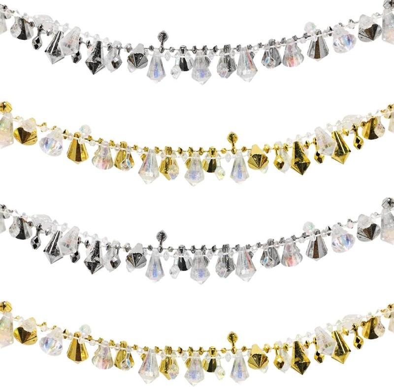 ACRYLIC PREMIUM QUALITY: This decorated beaded christmas garland unlit is made of thick durable acrylic plastic material, lightweight but strong sturdy. This beautiful gold and iridescent garland will bling sparkle in the light, gorgeous elegant colors in clear diamond iridescent and light gold beads, glistens with light.