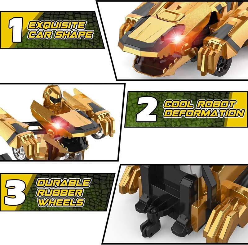 Intelligent One-Button Transforming: This dinosaur transform RC car can smoothly transforms into a robot and back with a simple press of a button. This is a great toys combines robot and remote control car features for 3 4 5 6 7 8 9 10 11 12 year old boys and girls
