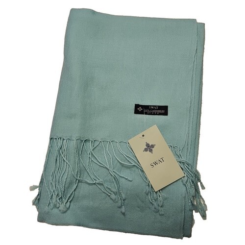 Swat STS Cashmere Scarf Shawl Head Cover Green Fringe Lightweight Shoulder Wrap
