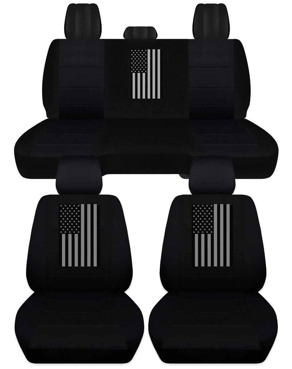 Fits 11-18 Dodge Ram 1500-3500 truck Front and Rear seat covers Black with Flag