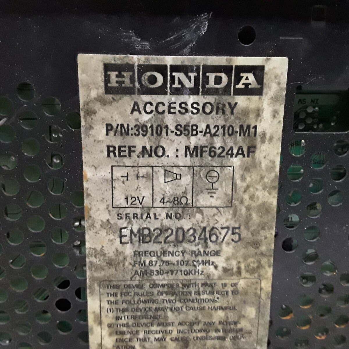 2004 through 2005 Honda Civic Hybrid sedan AM/FM CD radio receiver. Right side of faceplate is broken off see photos to be sure you can use it or Swap this faceplate with yours. As is no returns.