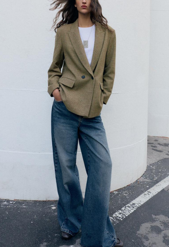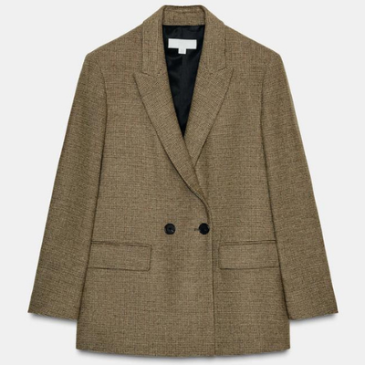 ZARA BNWT 2025. GREENS WOOL OVERSIZE CHECK BLAZER DOUBLE BREASTED. 8600/751/120