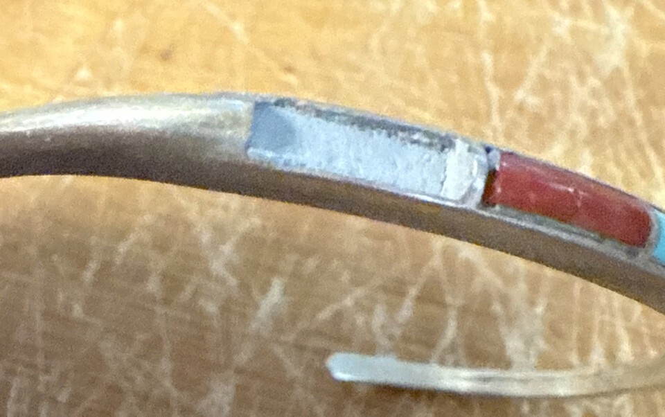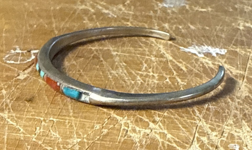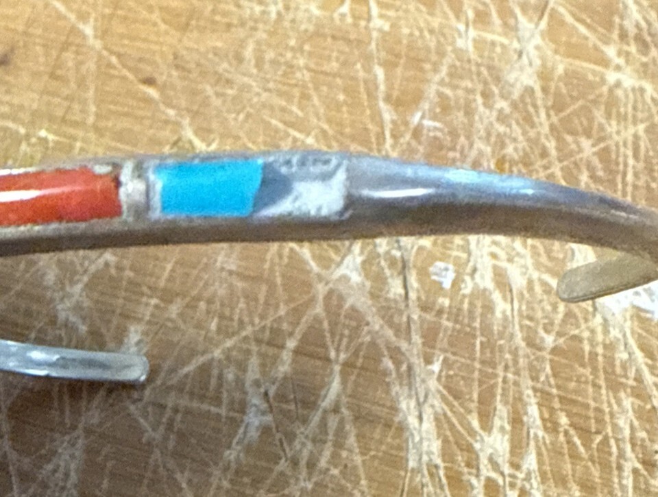 Native American Unsigned Cuff Broken Stones Turquoise Coral Silver Fred Harvey?