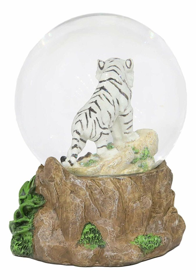 Ebros Forest Jungle Predator White Alaskan Siberian White Tiger Glitter Snow Globe