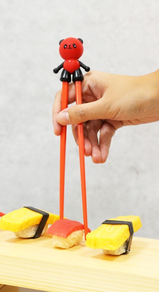 ? This beautiful pair of training chopsticks set is made in a state of the art factory in China. They are BPA Free and FDA approved. They are made of premium high quality melamine (chopsticks) and silicone (animated guide). Handwash only.