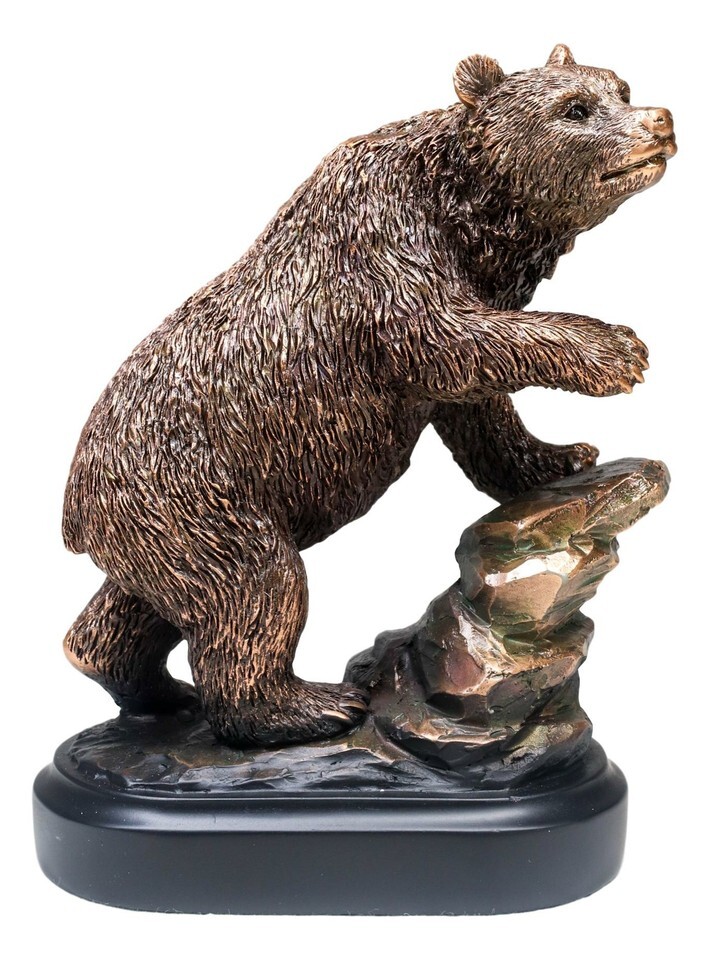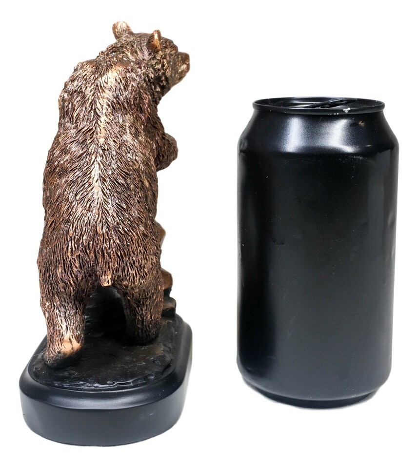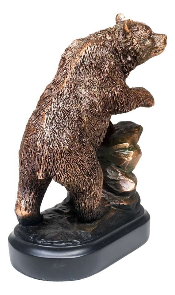 ? Heavy and bulky as they are, bears are actually pretty agile. In this sculpture, the black bear is standing on his rear legs while one paw is raised in the air. Our impressive, 360-degree, bronze electroplated resin statue is expertly finished with a hand-applied, classic sepia bronze patina and polish to bring out the amazing detail.