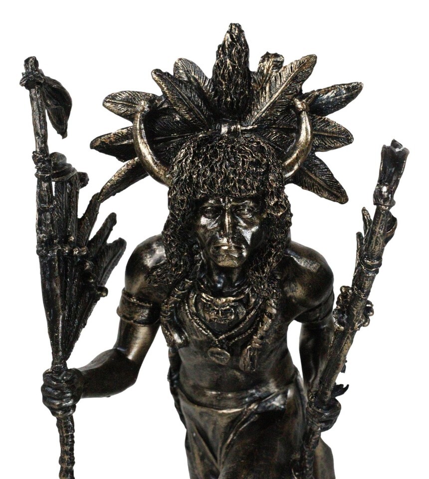 Navajo Indian Tribal Buffalo Headdress Feathers Medicine Man Warrior Figurine