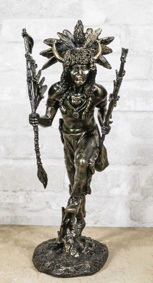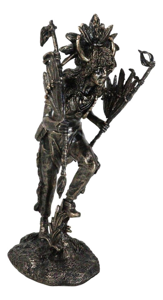 ? Celebrate the spirit of the Navajo Indian tribe with our intricately crafted figurine depicting a Tribal Warrior Hunter Chief. This powerful figurine features a Native American warrior adorned with traditional symbols, including a buffalo, bison, eagle feather, and more, embodying the cultural richness of the Navajo tribe. The warrior is poised with strength and reverence, reflecting the deep connection to nature and the spiritual significance of these symbols.