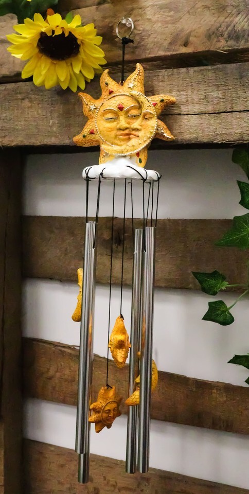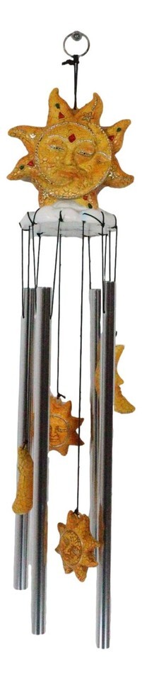 Ebros Mosaic Helios God Sun And Moon Face Celestial Harmony Wind Chime Patio Garden