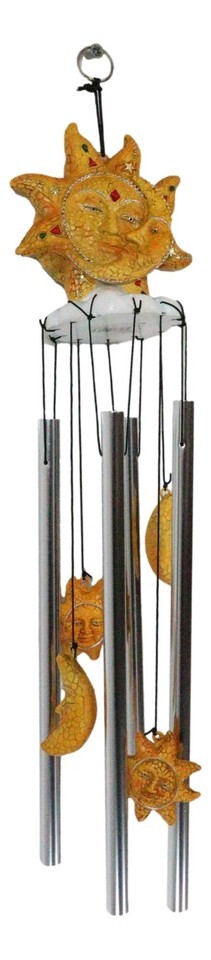 ? Make your patio or garden come alive with a decorative wall hanging that draws on the energy of the moon and the sun. This wind chime won't be eclipsed by other objects in the room, thanks to a design that emphasizes curves, mirrors, crystals, gems and pristine colors.