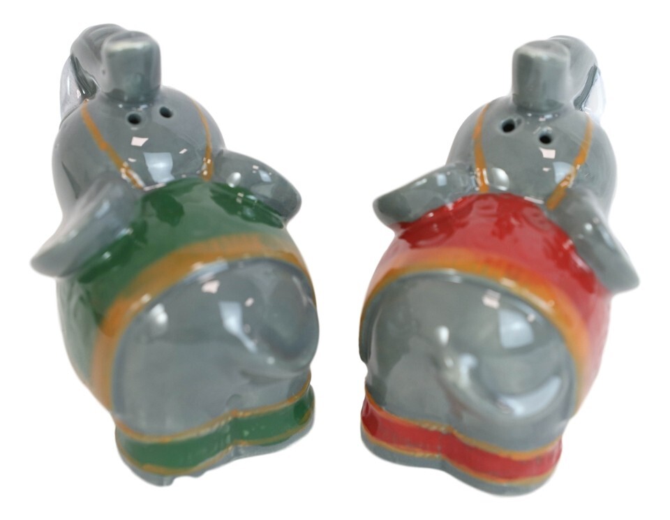 Ebros Ceramic Circus Carnival Elephants Trunks Up Salt Pepper Shakers Figurine Set
