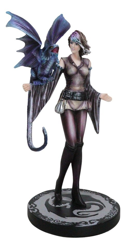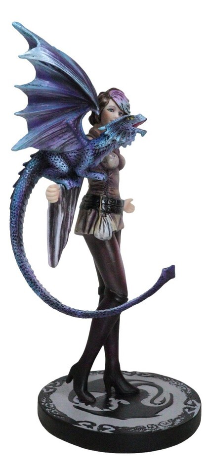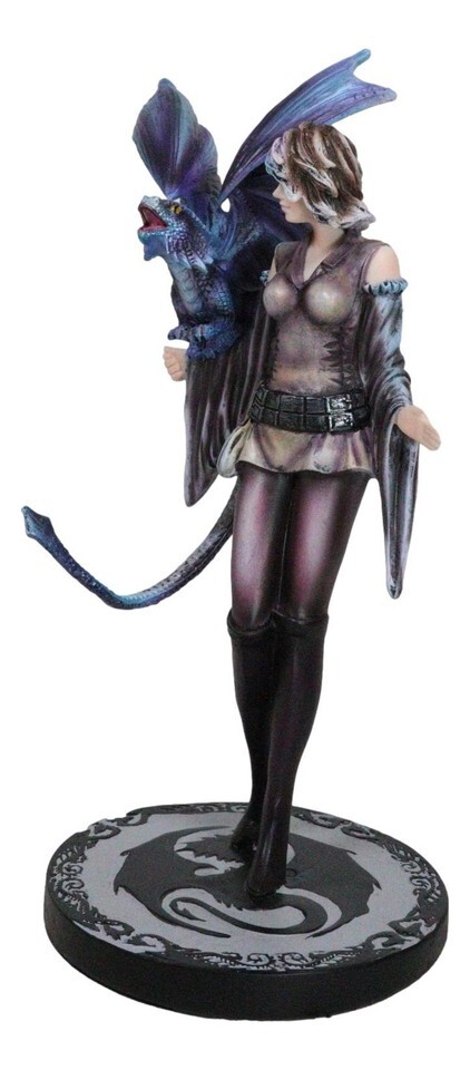 Fantasy Dragon Trainer Warrior Fairy Princess With Young Dragonling Figurine