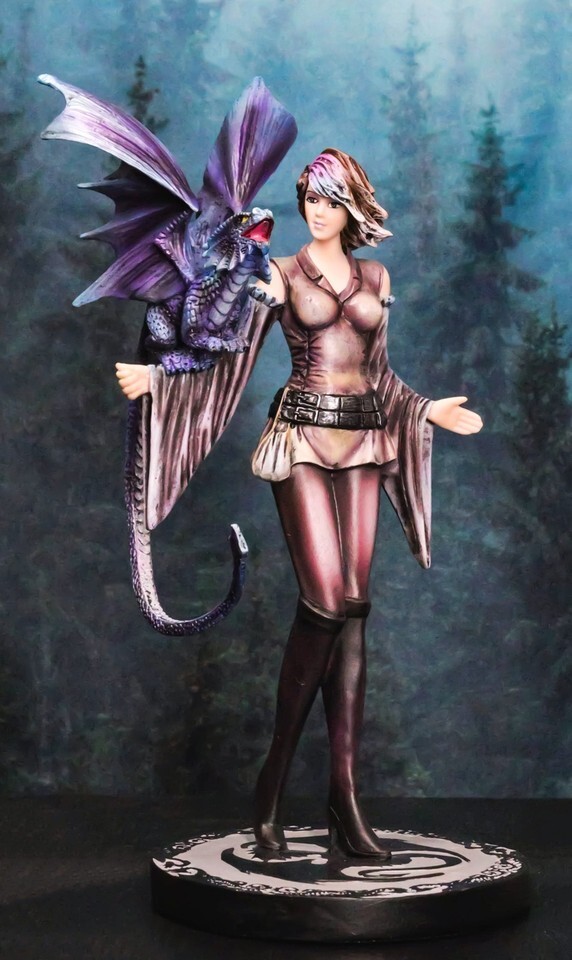 ? This Dragon Trainer Warrior Princess Statue is made of designer composite resin, hand painted and polished individually. Color Tone may vary slightly from pictures.
