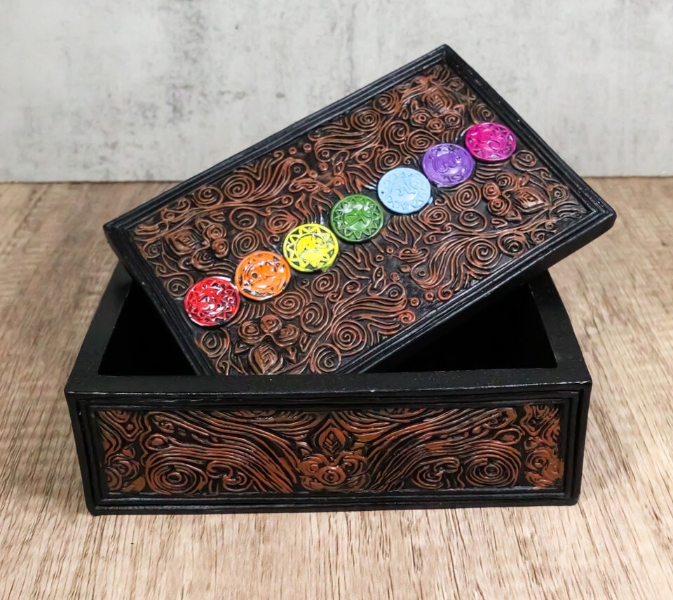 Metaphysical Rainbow 7 Chakra Zone Floral Scrollwork Tarot Cards Trinket Box