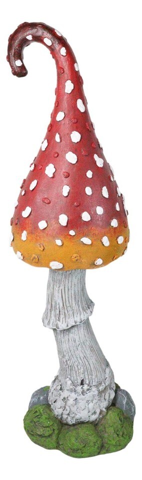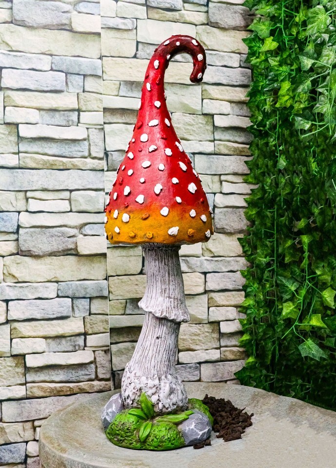 Large Fairy Garden Red White Spotted Crooked Toadstool Mushroom Figurine 23"H