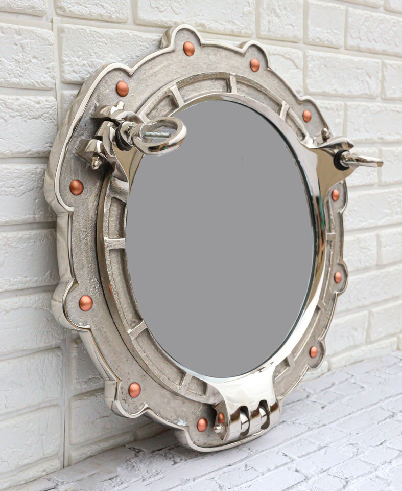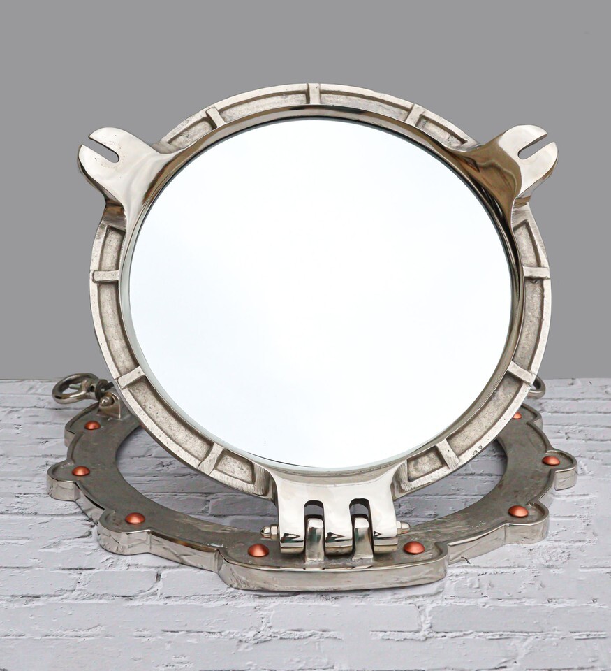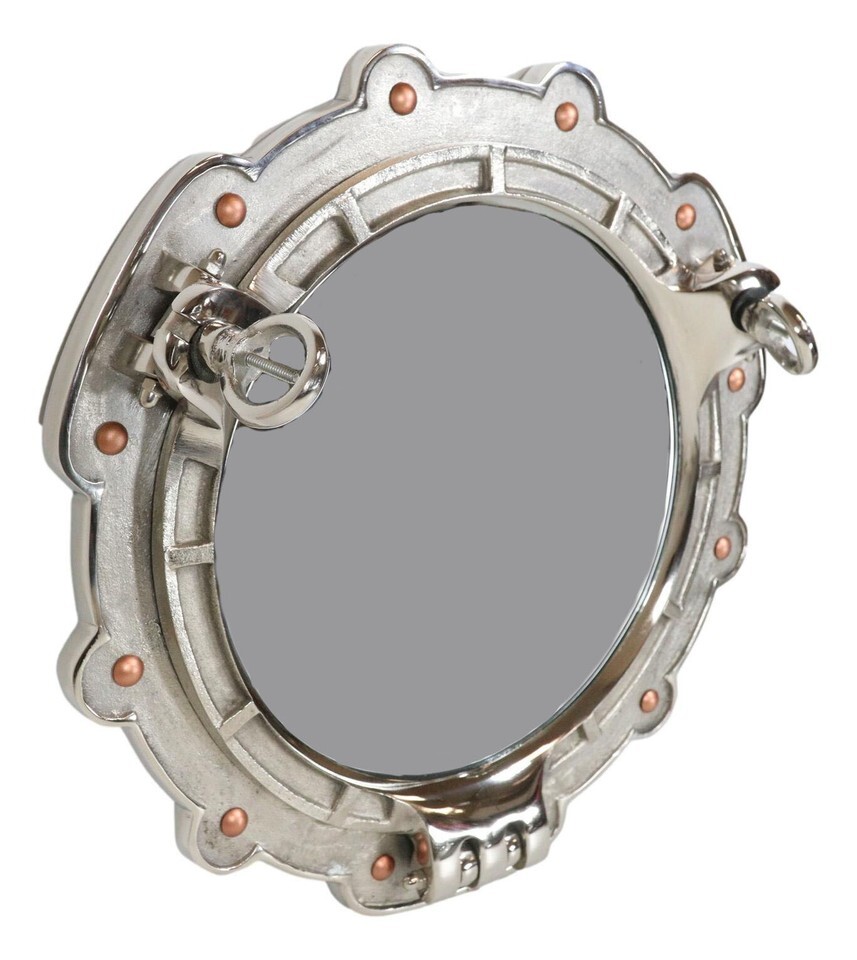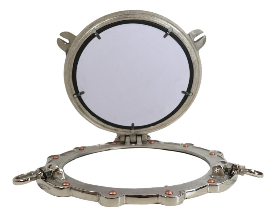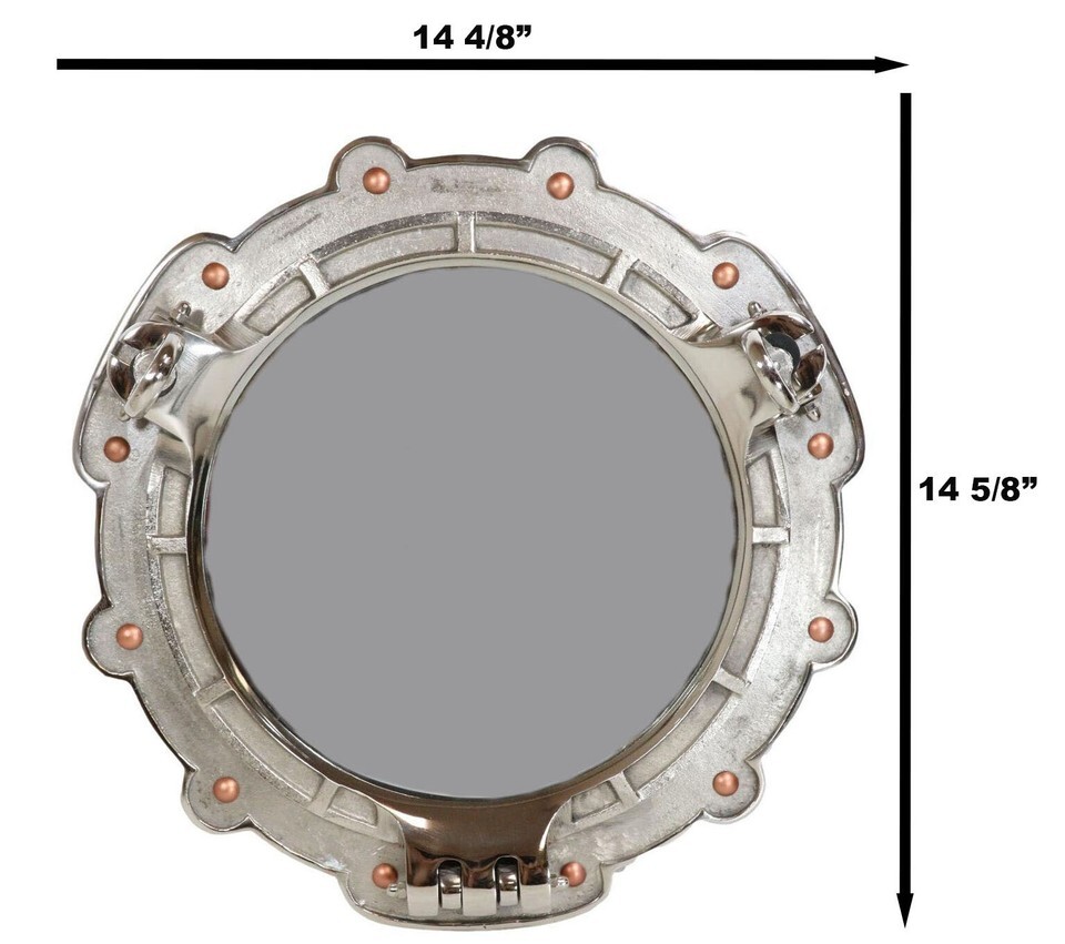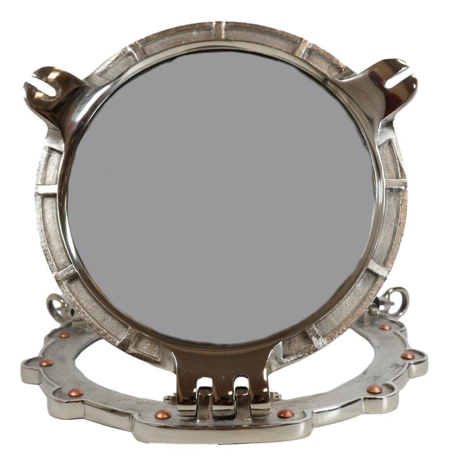 ? This eye catching polished aluminum round porthole mirror opens just like an actual porthole. Measuring 14.5" in diameter, it will add a definite nautical touch to wherever it's placed. It is a must have for those who appreciate high quality nautical decor. It makes a great gift, impressive decoration and works well in many decor environments.