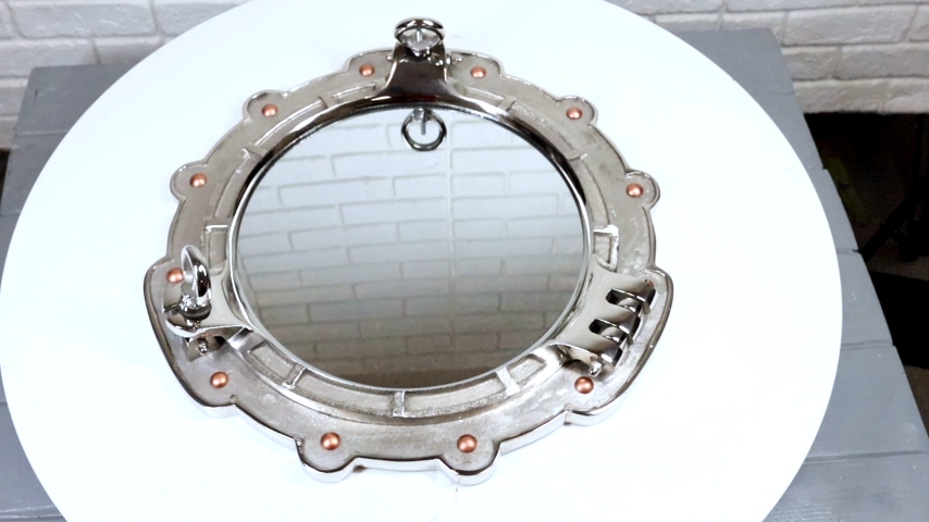? This Marine Ship Hull Porthole Folding Mirror is made of high quality aluminum, individually hand polished. Color tone may vary from pictures. The screws on the borders fastens the mirror part to the base. When unscrewed, the mirror part will fold out on the hinge.