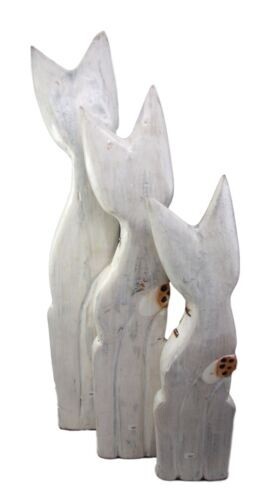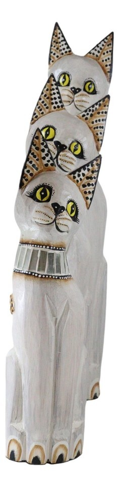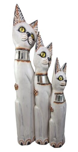 Balinese Wood Handicraft White Siamese Feline Cat Family Set of 3 Figurines 24"H