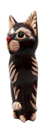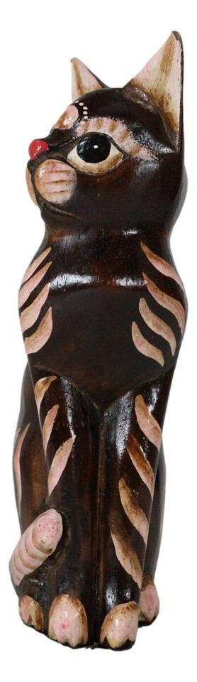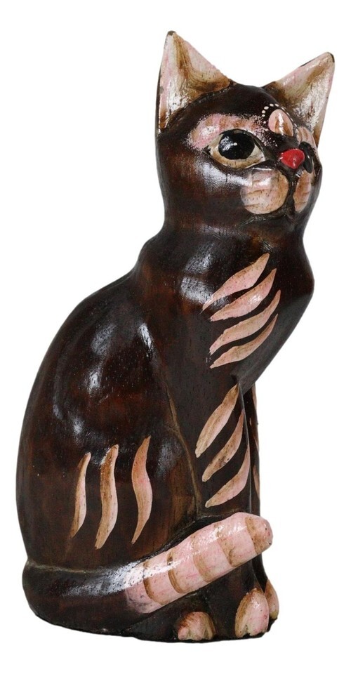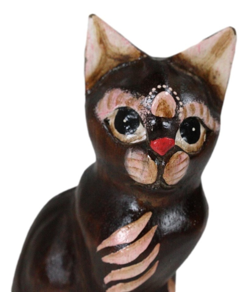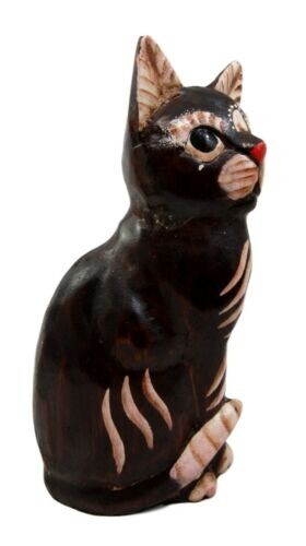 Balinese Wood Handicrafts Adorable Chocolate Feline Cat With Red Nose Figurine