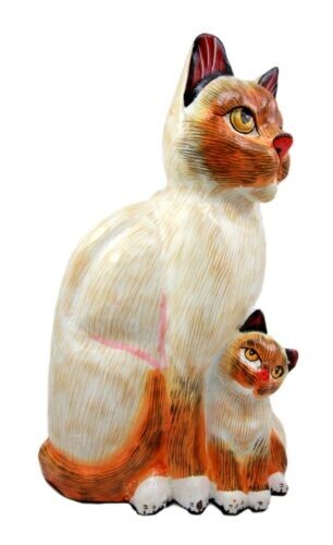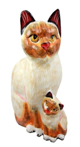 This cat is made of Albesia wood, hand painted and polished individually. Because each figurine is hand carved (handicraft) and crafted out of natural wood, some variations in design and finish are a norm.