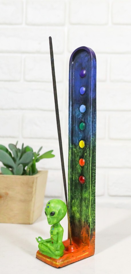Green Roswell Alien UFO With 7 Chakra Zone Colors Incense Stick Burner Figurine
