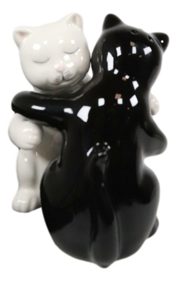 Ebros Colorful Ceramic Black White Cats Couple Hugging Dancing Salt Pepper Shakers Set