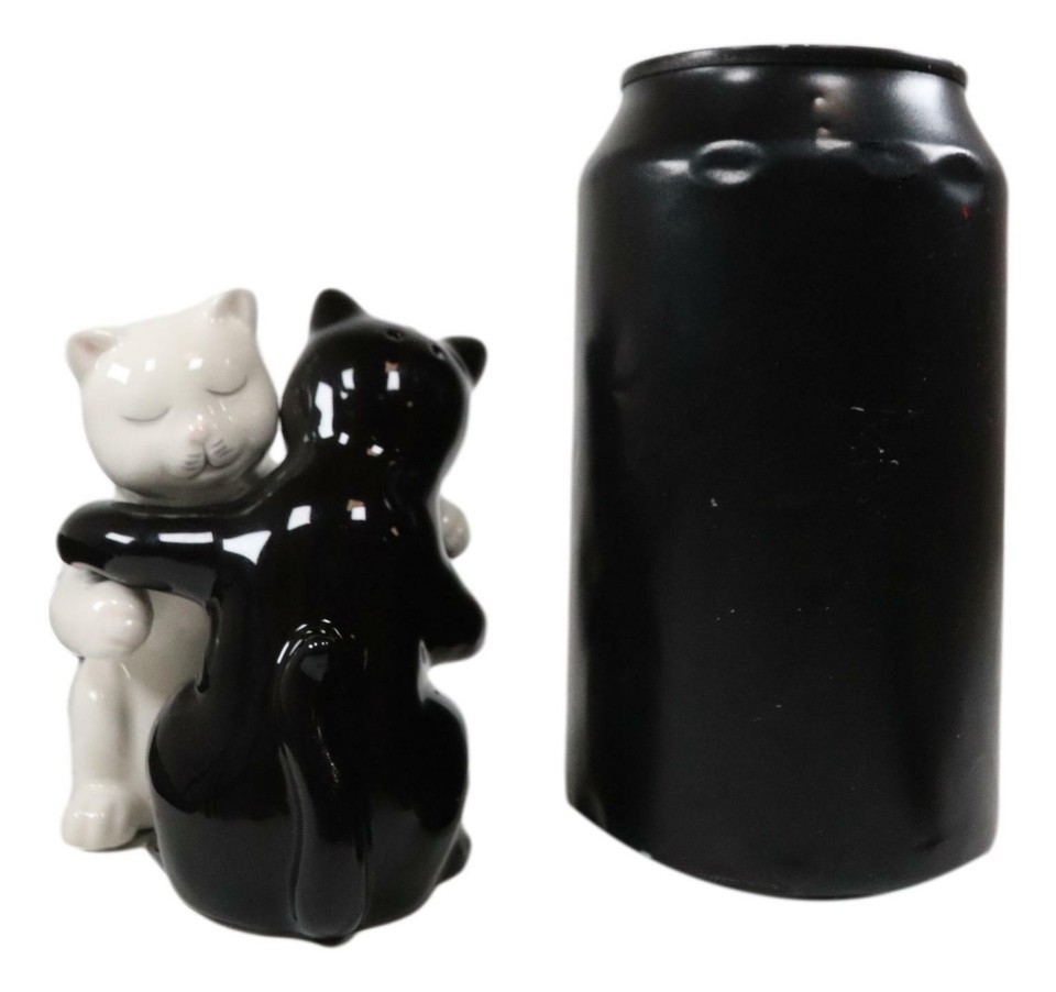 Ebros Colorful Ceramic Black White Cat Couple Hugging Dancing Salt Pepper Shaker
