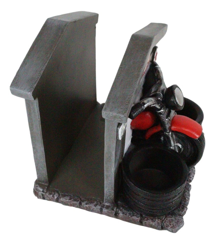 ? This Old Fashioned Nostalgia Red Chopper Bike With Garage Shop paper napkin holder is made of cold cast resin, hand painted and polished individually.