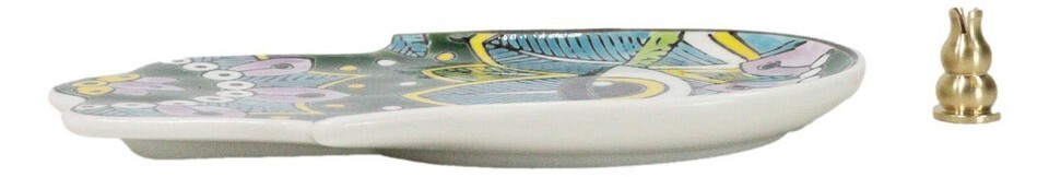 Green Chakra Hamsa Palm Mandala and Evil Eye Ceramic Dish Brass Incense Holder