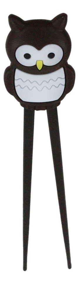 Ebros Japanese Chocolate Owl Bird Reusable Training Chopsticks Set With Silicone Guide
