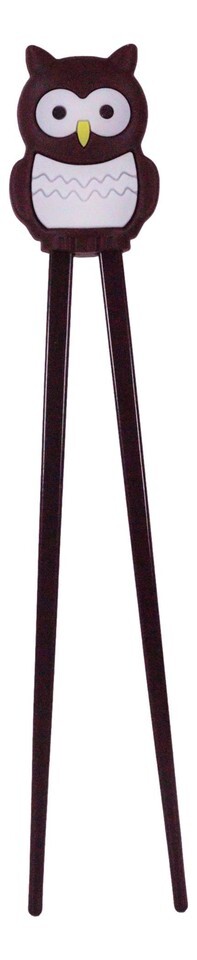 Japanese Chocolate Owl Bird Reusable Training Chopsticks Set With Silicone Guide
