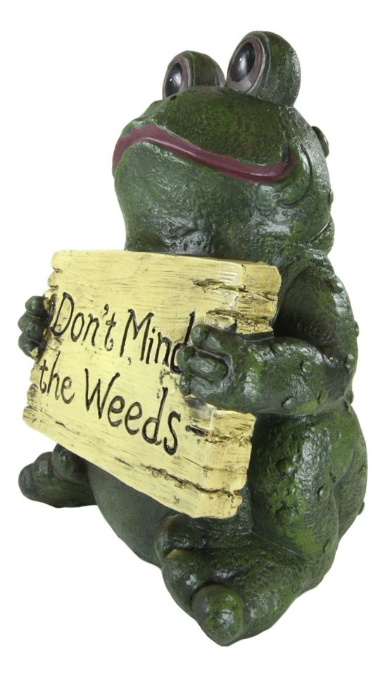 Ebros 10" H Whimsical Green Frog Toad Holding 'Don't Mind The Weeds' Sign Statue