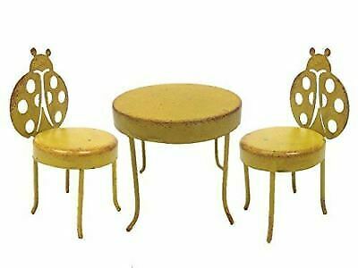 Small Garden Metal Table and 2 Lady Bug Chairs Set Mini Fairy Garden Figurine