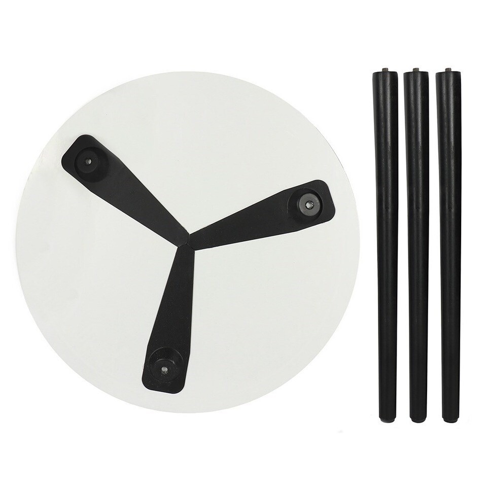? This 'The Dark Reader' Black Cat Side Table round top is made of glass while the base and frame is made of wood. The table top and the legs come unassembled during shipping.