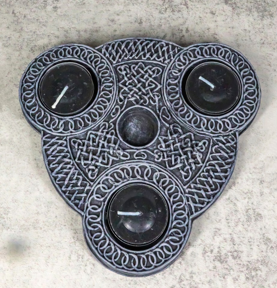 Wicca Triple Goddess Celtic Knotwork Triquetra Triple Votives Taper Candleholder