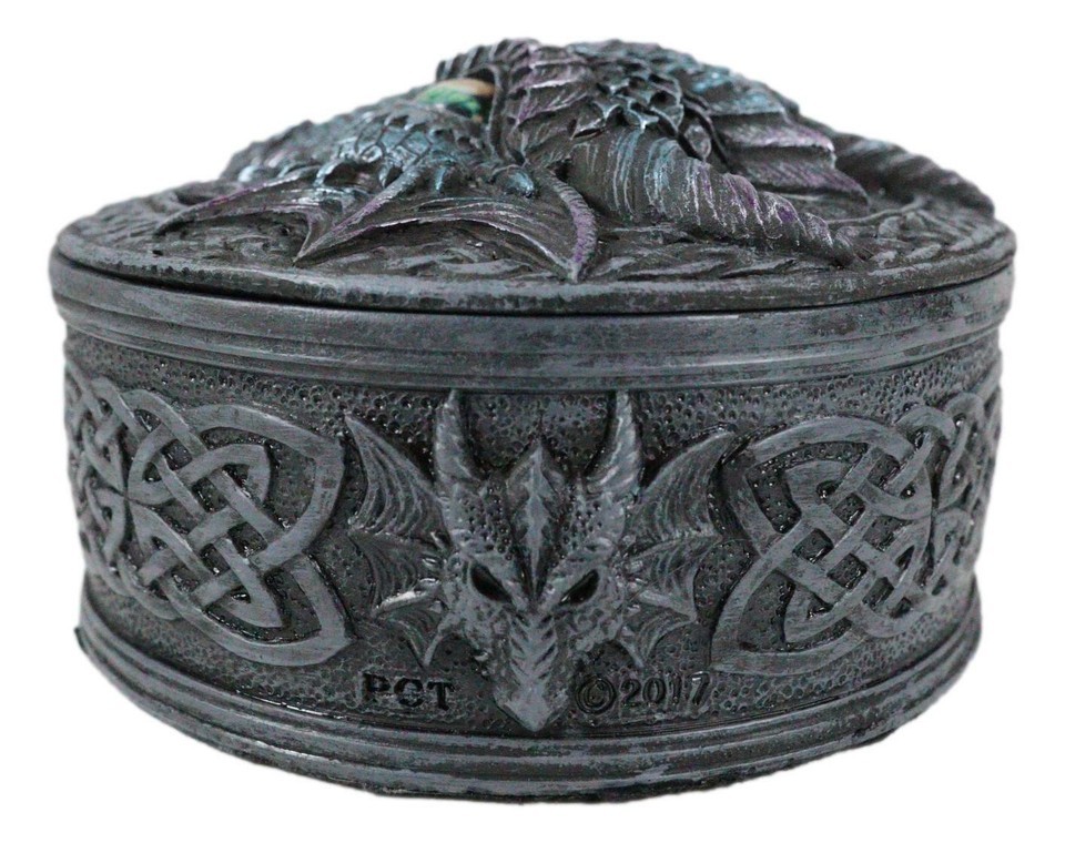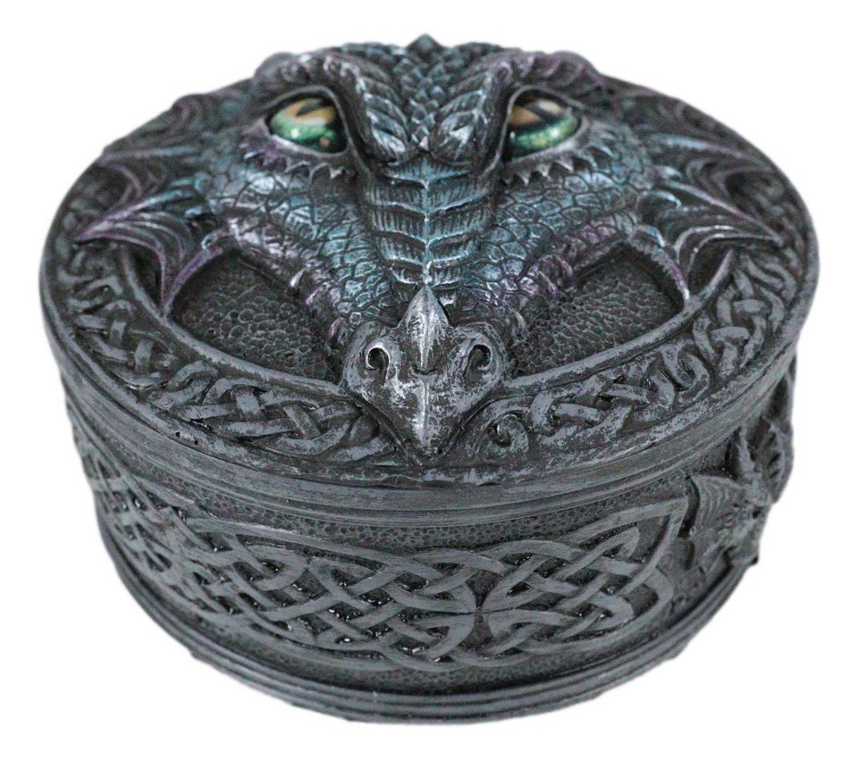 Ebros Celtic Blue Midnight Dragon Face With Rolling Eyes Decorative Box Figurine