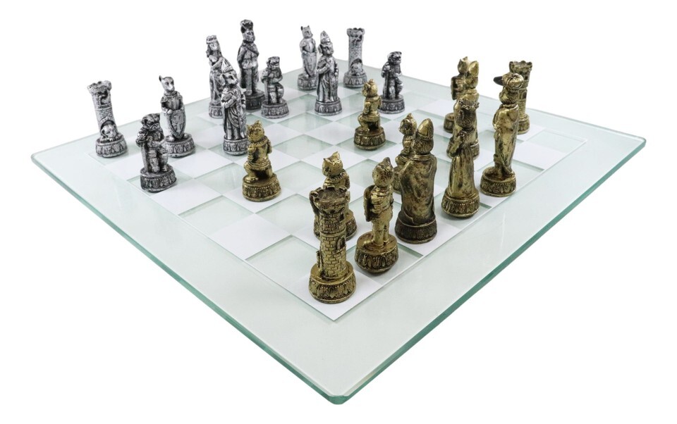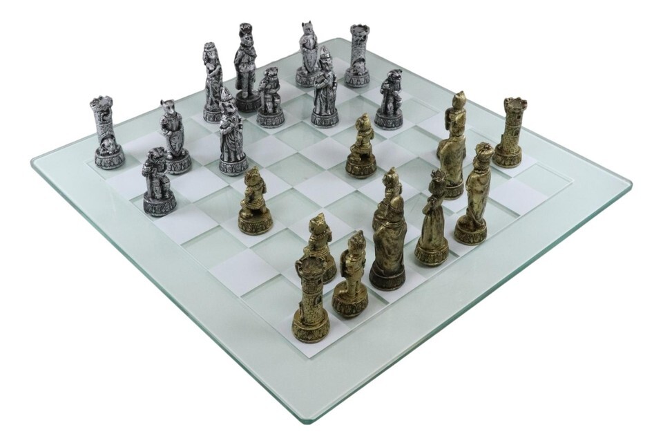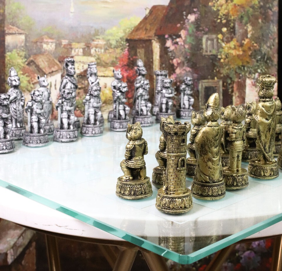 Royal Pet Cats Versus Dogs Chess Animal Character Pieces With Glass Board Set