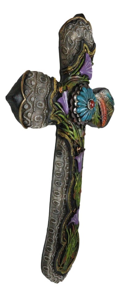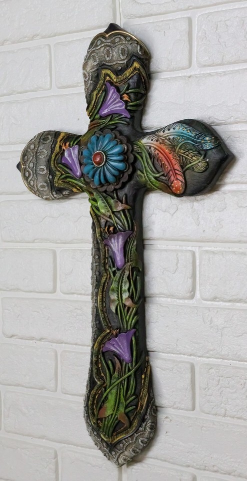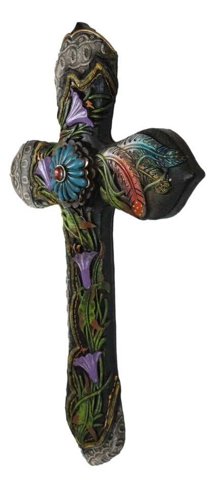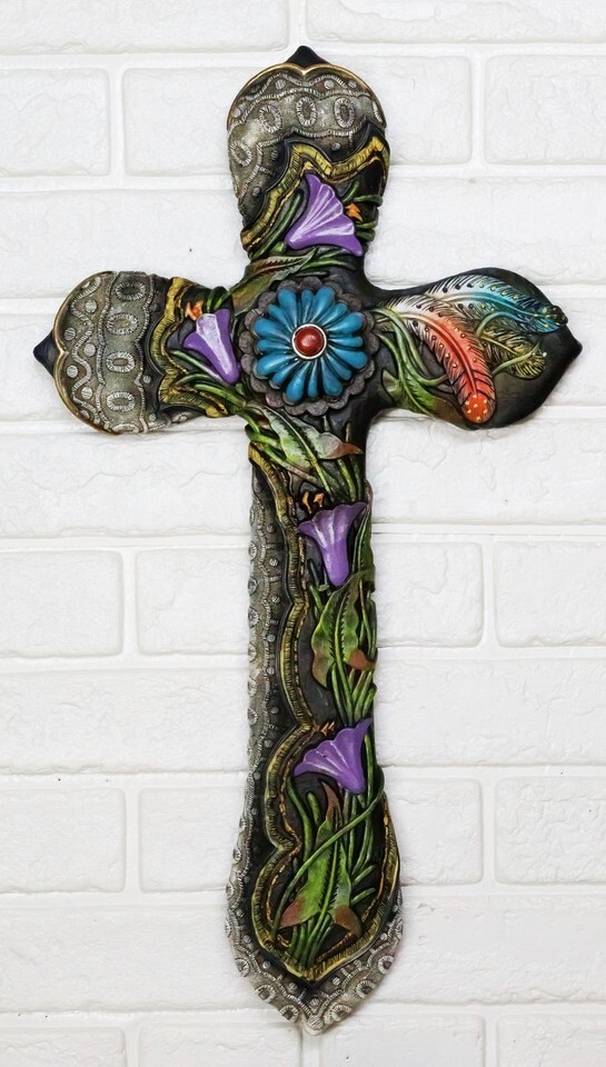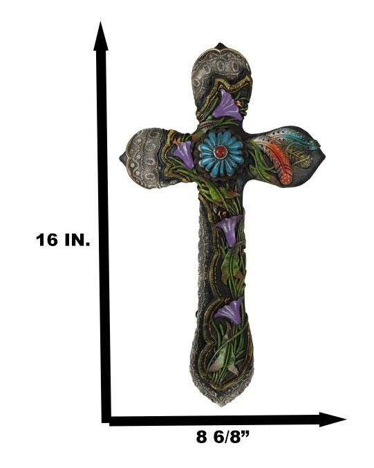 ? This Floral Blossoms And Feathers Wall Cross figurine is made of designer composite resin, hand painted and polished. Color Tone may vary slightly from photos.