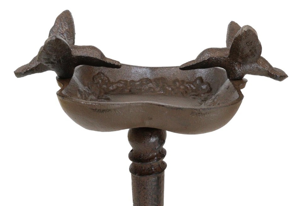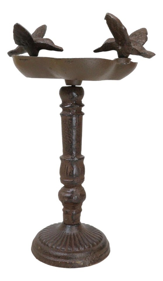 Rustic Cast Iron Hummingbirds Perching On Ornate Garden Bird Feeder Bath 11"H
