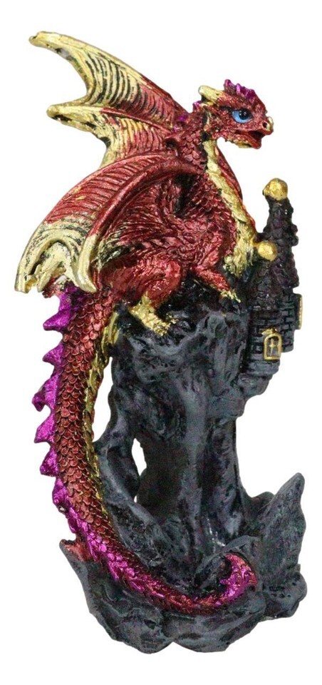 Metallic Crimson Red Dragon Guarding Castle and 50 similar items