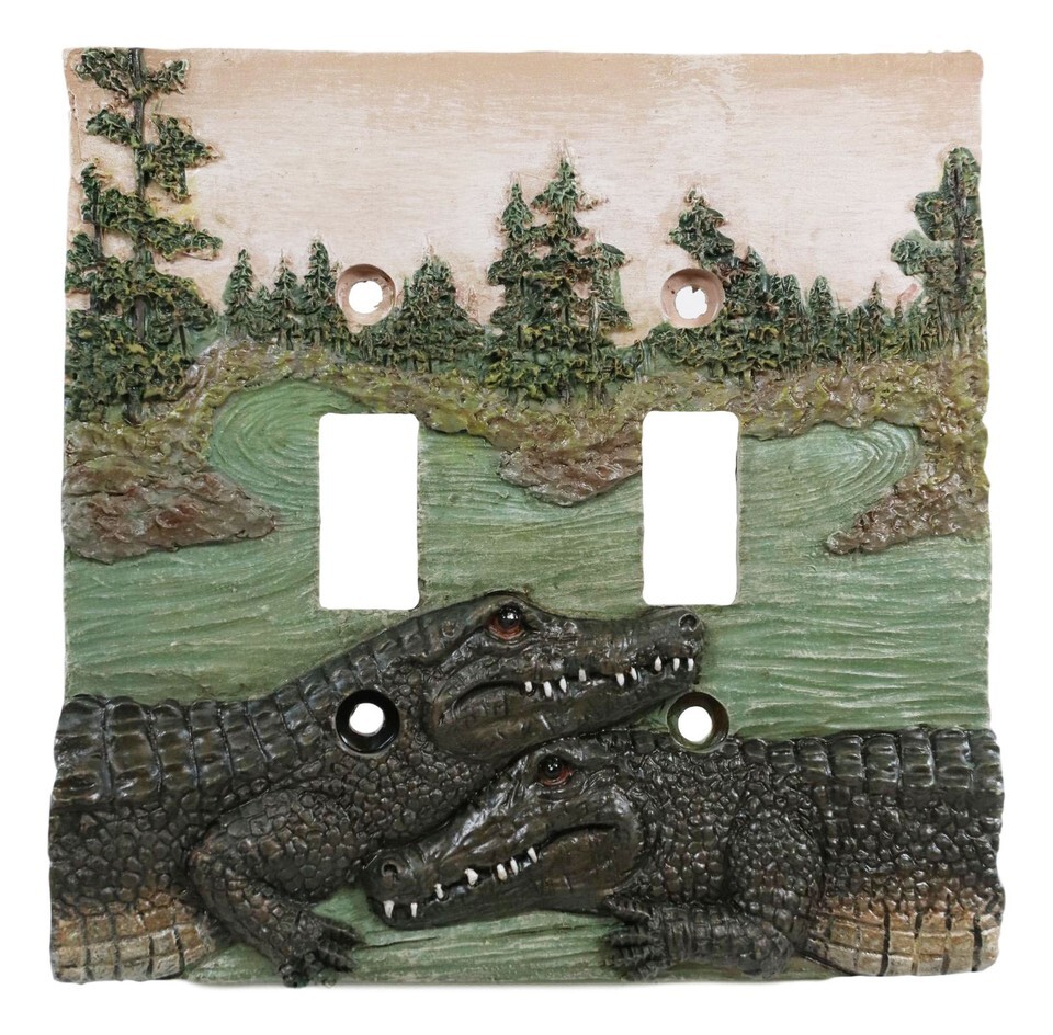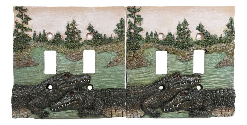 Pack of 2 Wildlife Bayou Swamp Alligator Double Toggle Switch Wall Outlet Plate
