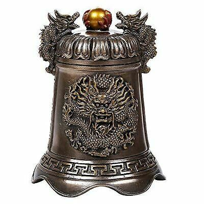 Oriental Fengshui Dragon Holding Orb Cast Bronze Bell Shaped Sculpture 5.25"H