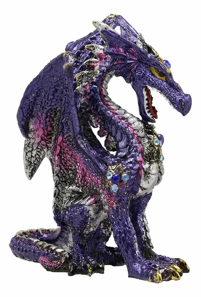 ? This Whimsical Purple Baby Dragon Statue is made of designer composite resin, hand painted and polished individually. Color Tone may vary.