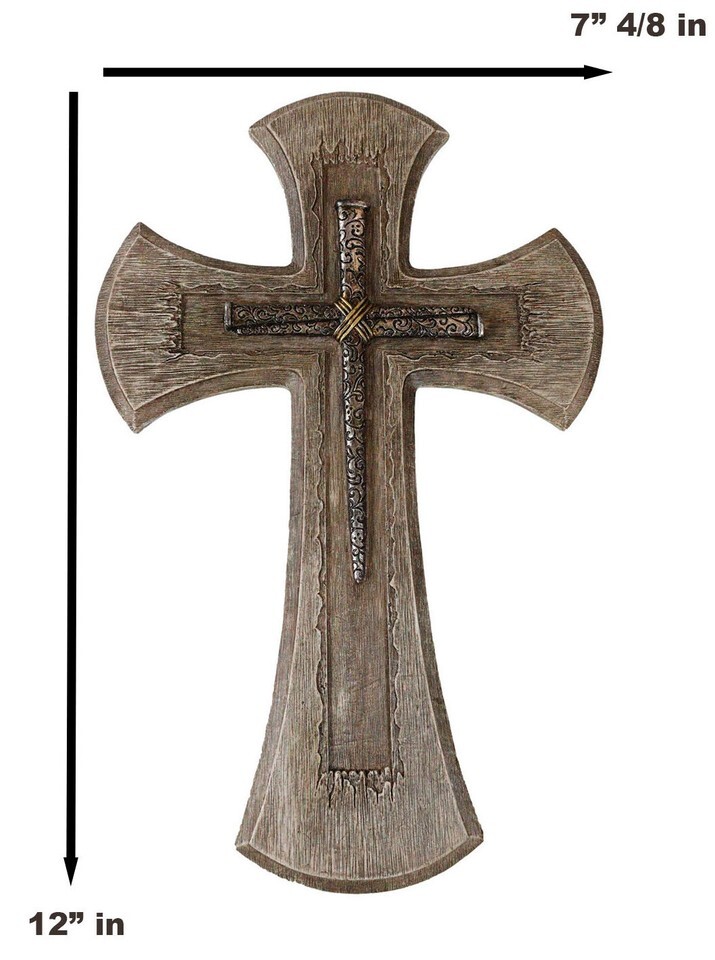 ? Hanging a cross in your room reminds your household of Jesus's ultimate sacrifice for the sins of all mankind. This cross is symbolic and bold, featuring convex curved ends, layered with nail spikes tooled with scroll art. The cross if perfect for your home or church, as a standalone wall decor or as a collage with other wall sculptures.