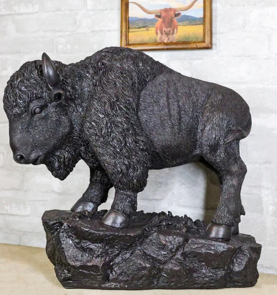 Large Southwestern Native American Bison Buffalo On Rock Rustic Statue 20" L