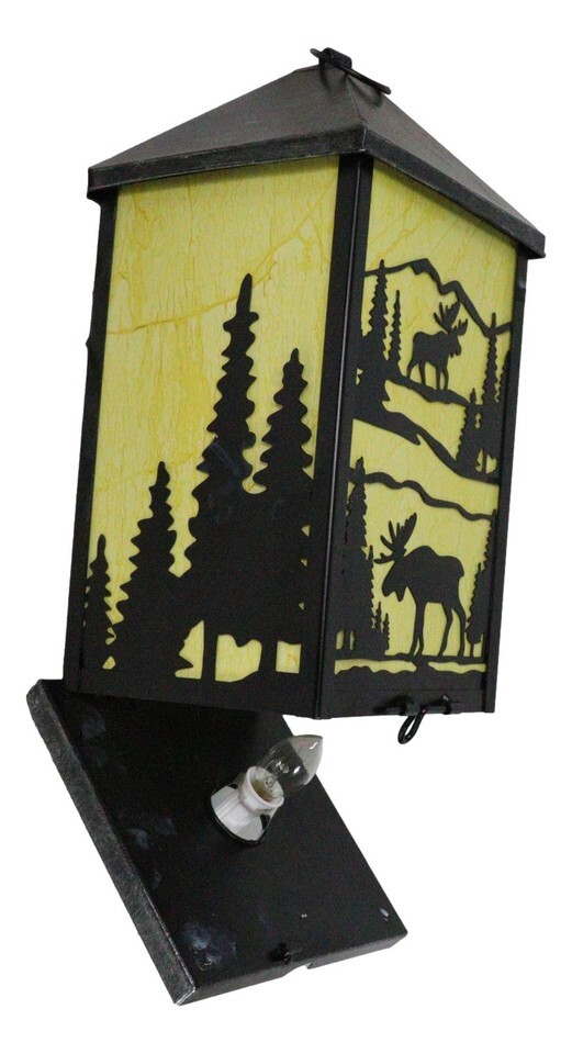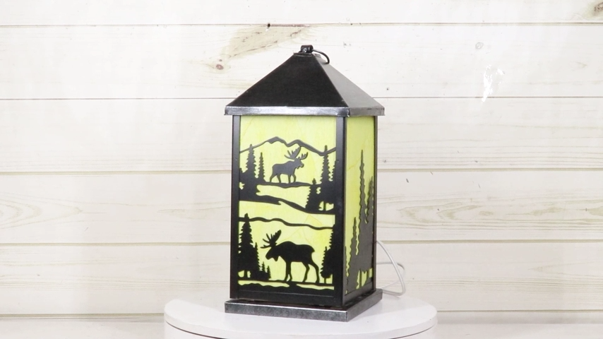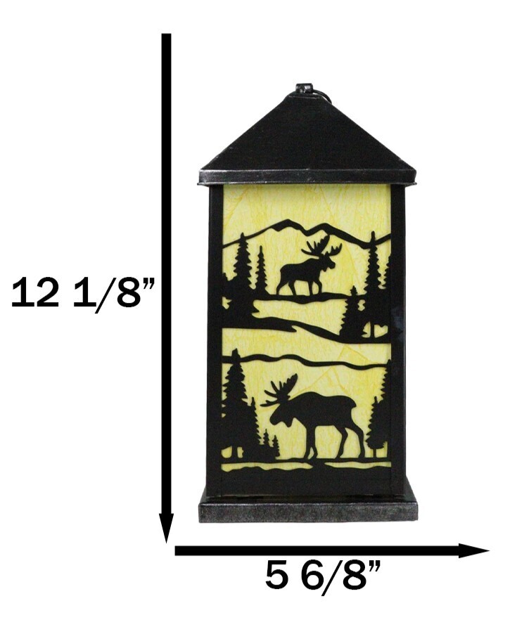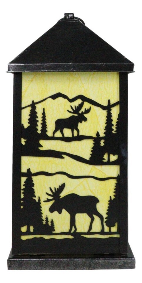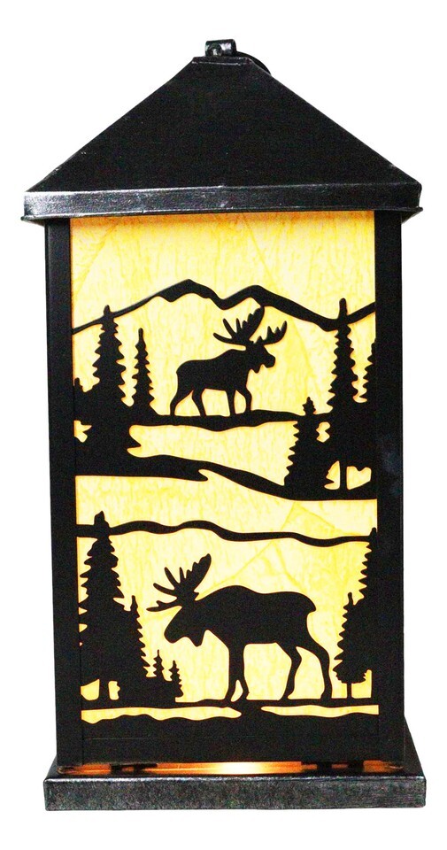 Rustic Deer Moose Scenic Forest Mountains Electric Metal Wall Or Floor Lantern