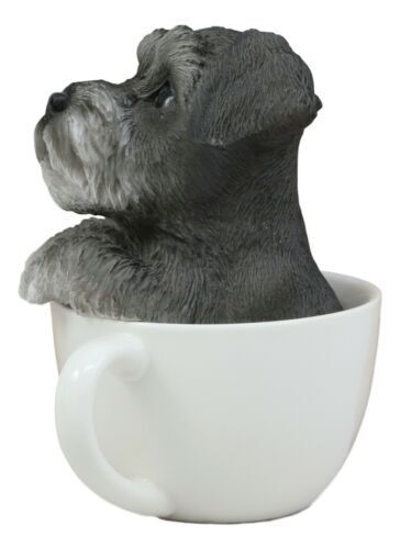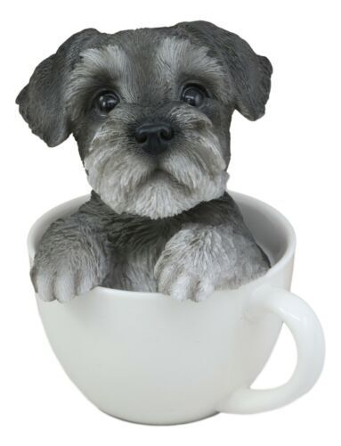 Realistic Grey Adorable Schnauzer Dog In Teacup Statue 5.75" Tall Pet Pal Dog