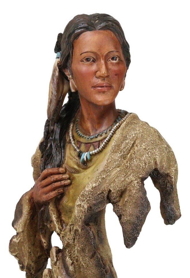 Tribal Native American Indian Lady Princess with Eagle Feathers Bust Figurine