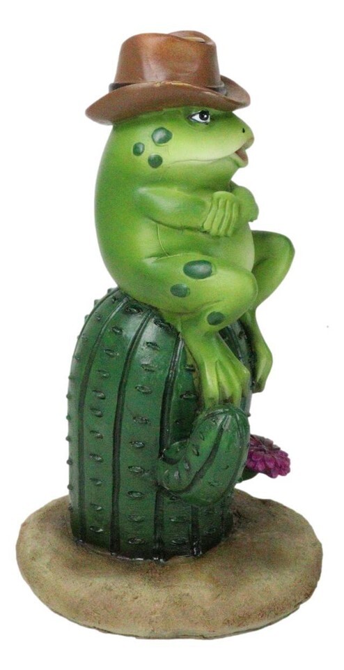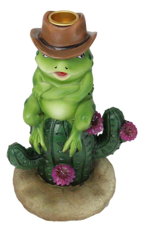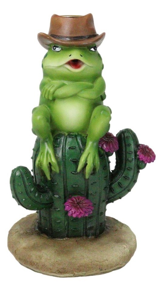 Western Outlaw Cowboy Frog On Cactus Backflow Incense Cone Burner Figurine